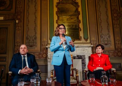 Gości powitała dyrektor Instytutu Polskiego w Rzymie Małgorzata Furdal. Następnie głos zabrał ambasador RP w Rzymie Ryszard Schnepf, który przywitał marszałek Senatu wraz z towarzyszącą jej delegacją Senatu RP.